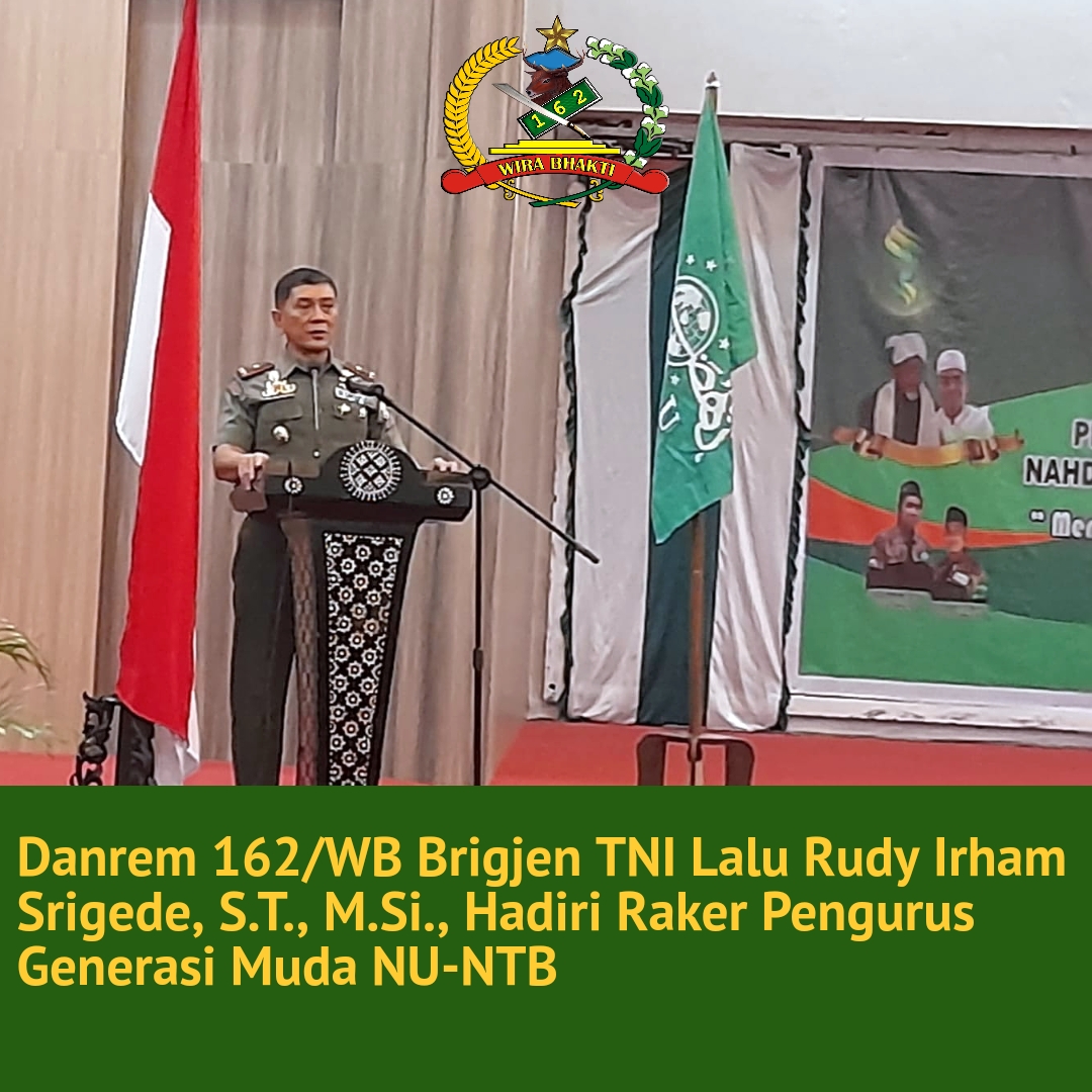 Lombok Tengah NTB – Danrem 162/WB Brigjen TNI L Rudy Irham Srigede S.T., M.Si., hari ini 21/5 menghadiri acara Pengukuhan dan Rapat Kerja Pengurus Wilayah GMNU (Generasi Muda Nahdatul Ulama) Provinsi Nusa Tenggara Barat (NTB) di Ballroom Gedung B, Kantor Bupati Lombok Tengah.