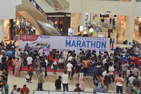 Mataram, – Ratusan peserta lomba lari TNI International Marathon (TIM) 2018 membanjiri tempat pengambilan race pack yang dibuka Panitia TIM di Mall Episentrum, Mataram, Nusa Tenggara Barat, Jumat (2/11).