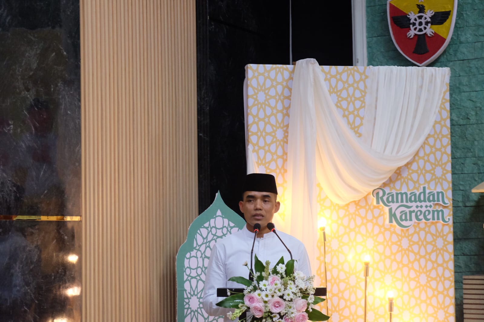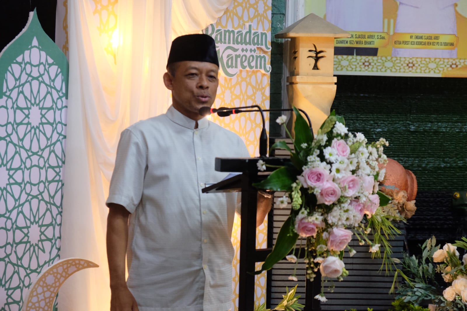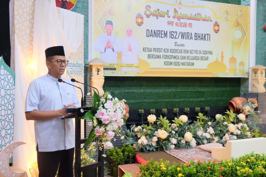 Dalam sambutannya, Danrem 162/WB menyampaikan bahwa bulan suci Ramadhan merupakan momentum yang tepat untuk meningkatkan kualitas keimanan dan ketakwaan sekaligus memperkuat nilai-nilai kebersamaan, persatuan, serta kepedulian sosial di tengah masyarakat.