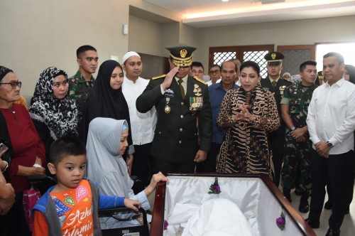 “Dan dalam kesempatan tersebut, Kasad dan Ny. Hetty Andika Perkasa bertemu dengan keluarga dan kerabat almarhum saat disemayamkan,” imbuhnya.