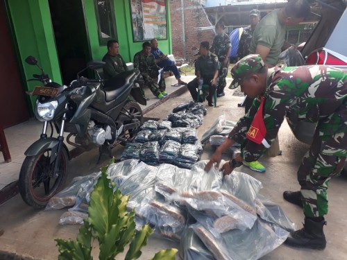 Selama pembagian disaksikan langsung Dan SSK TMMD Kapten Inf Mujiono dan Bamin serta Piket Koramil.