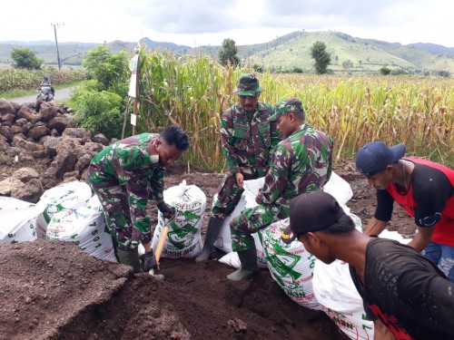 Dompu – Sasaran fisik TNI Manunggal Membangun Desa (TMMD) ke 104 tahun 2019 Kodim 1614/Dompu terus diintensifkan untuk mempercepat proses penyelesaiannya. Salah satu program fisiknya yakni pembuatan empat unit gorong-gorong dan duiker di Desa Lanci Jaya dan Desa Tekasire Kecamatan Manggelewa Kabupaten Dompu, Selasa (19/3).