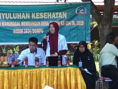 Dompu – Disela-sela melaksanakan program kegiatan fisik, Satgas TMMD ke 104 tahun 2019 Kodim 1614/Dompu menggelar penyuluhan kesehatan dengan menggandeng dr. Nia dari Puskesmas Manggelewa di SMAN 1 Manggelewa, Rabu (13/3).