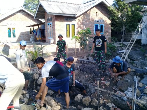 Lombok Timur – Pelaksanaan program TNI Manunggal Membangun Desa (TMMD) ke 105 tahun 2019 Kodim 1615/Lotim di Dusun Tambun Desa Senyiur Kecamatan Keruak hari ini membangun tempat wudhu Musholla Ashabul Yamin.