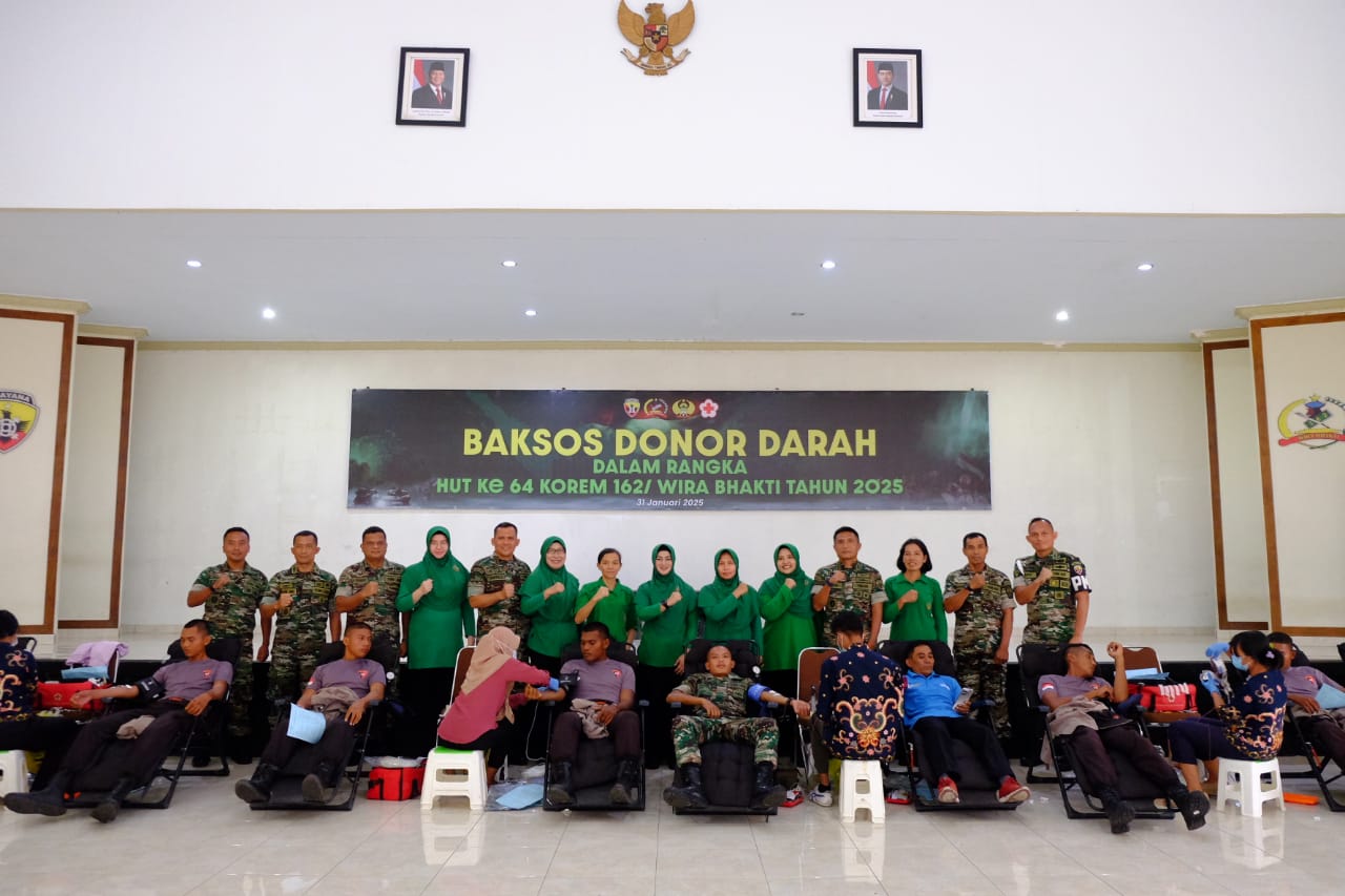 Kasrem 162/WB, Kolonel Inf Wirawan Eko P., S.E., M.H., yang memimpin langsung kegiatan ini, menegaskan bahwa donor darah bukan hanya sekadar seremonial, tetapi wujud nyata kepedulian sosial dan solidaritas kemanusiaan.