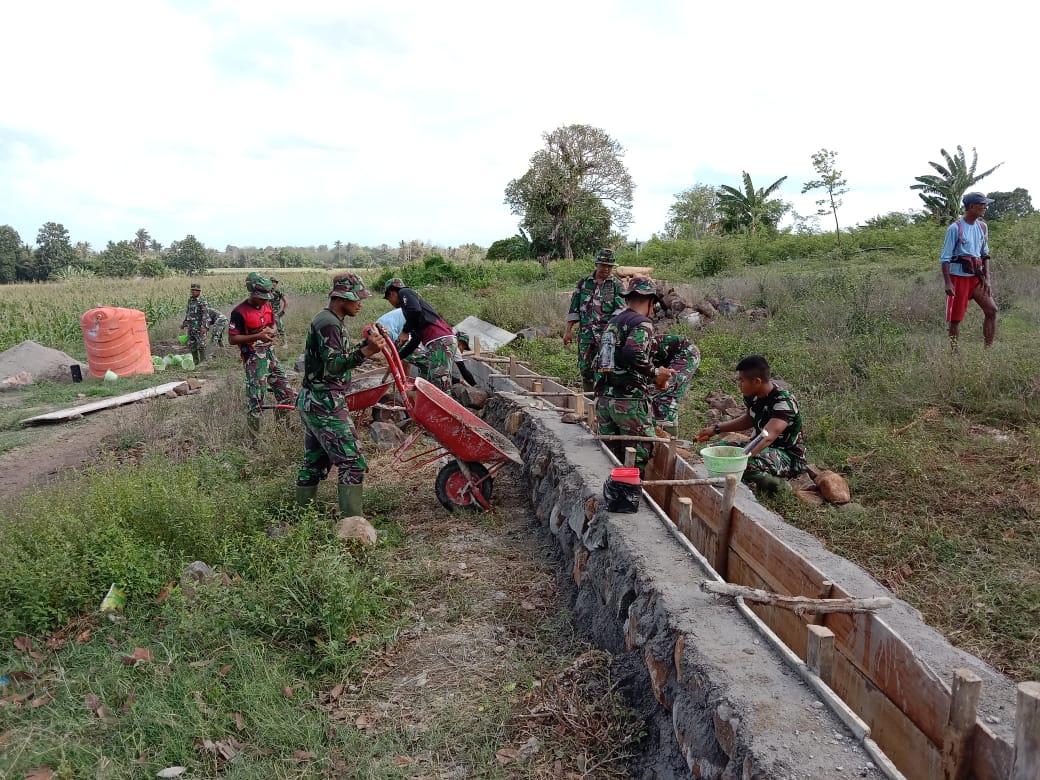 Sumbawa – Satgas TNI Manunggal Membangun Desa (TMMD) ke-109 hari ini kembali kejar target pengerjaan di lapangan agar semua sektor sasaran fisik di desa Jotang dan desa Jotang Beru Kecamatan Empang, Kabupaten Sumbawa segera selesai tepat pada waktu. Jumat (16/10).