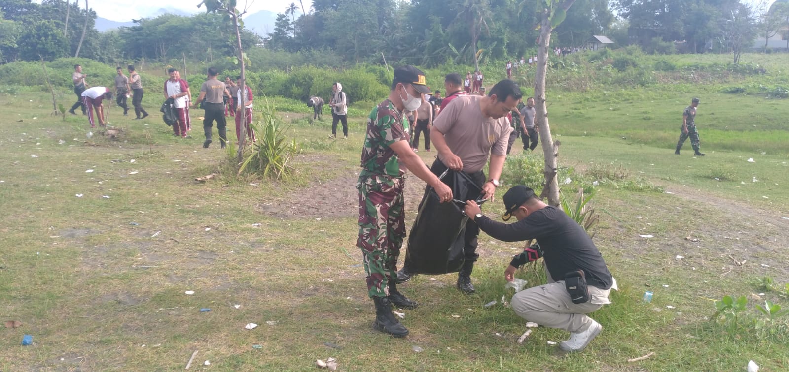 Selanjutnya seluruh personil baik dari Koramil dan Polsek Ampenan dan Pegawai Kecamatan melaksanakan kurvei di sepanjang bibir pantai Penghulu Agung Kelurahan Ampenan Selatan.