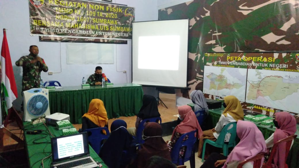 Di hadapan Perwakilan Mahasiswa UTS Sumbawa dan pelajar Danki Satgas TMMD 109 Kapten Inf I Wayan Suledra menyampaikan, maju mundurnya masa depan bangsa sangat bergantung pada generasi muda. Oleh karenanya selain harus mumpuni dengan bekal ilmu pengetahuan sesuai keilmuan, generasi muda juga harus berkarakter dengan pondasi mental yang kuat juga memiliki wawasan kebangsaan yang tinggi.