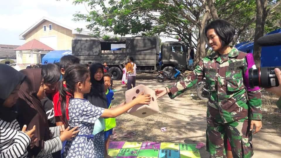 Lobar – Tim Psikologi TNI yang tergabung dalam Komando Tugas Gabungan Terpadu (Kogasgabpad) memberikan bantuan pemulihan trauma psikologis bagi warga terutama anak-anak pasca gempa bumi yang terjadi di Lombok Provinsi Nusa Tenggara Barat.
