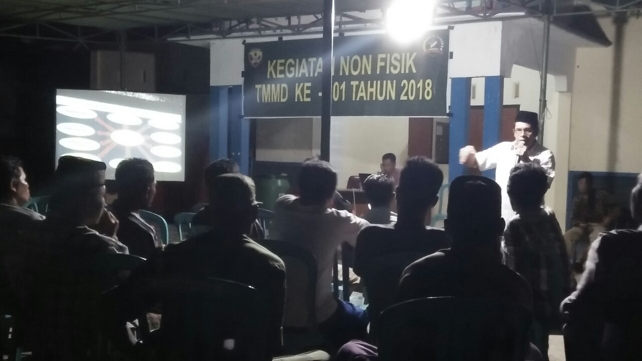 Kegiatan TMMD ke 101 di Desa Aik Kangkung Kecamatan Sekongkang Kabupaten Sumbawa Barat (KSB) selain menyelesaikan kegiatan fisik juga dilakukan berbagai macam kegiatan non fisik seperti penyuluhan agama yang digelar kemarin malam, Senin (16/4).