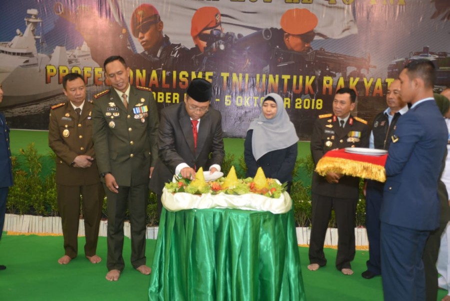 Mataram – Usai menggelar Upacara Peringatan HUT TNI ke 73 tahun 2018 di Lapangan Kantor Gubernur NTB, acara dilanjutkan dengan syukuran di Islamic Center Hubbul Wathon Mataram dengan menggelar acara potong nasi tumpeng sebagai wujud rasa syukur kepada Allah SWT Tuhan YME, Jumat (5/10).