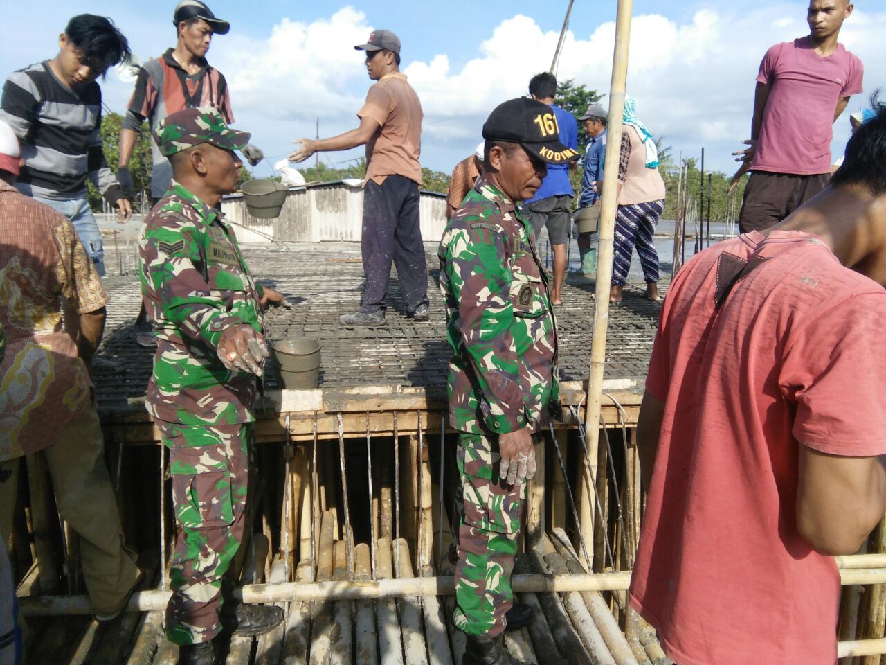 Lantai dua Masjid Raya Desa Karombo Kecamatan Pekat Kabupaten Dompu tadi pagi Minggu (04/03/208) dilakukan pengecoran. Pengecoran yang dilakukan secara gotong royong tersebut diikuti oleh Danramil 1614-05/Pekat Lettu Inf Ibrahim bersama anggota Koramil Pekat, Muspika Kecamatan Pekat dan ratusan masyarakat tersebut berjalan lancar.