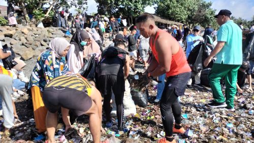 Terlihat ratusan personel yang tergabung dalam kegiatan tersebut bahu-membahu mengais sampah di pantai wisata Labuhan Haji yang terlihat menumpuk dan mengganggu pemandangan bahkan menimbulkan polusi udara disekitar pantai.