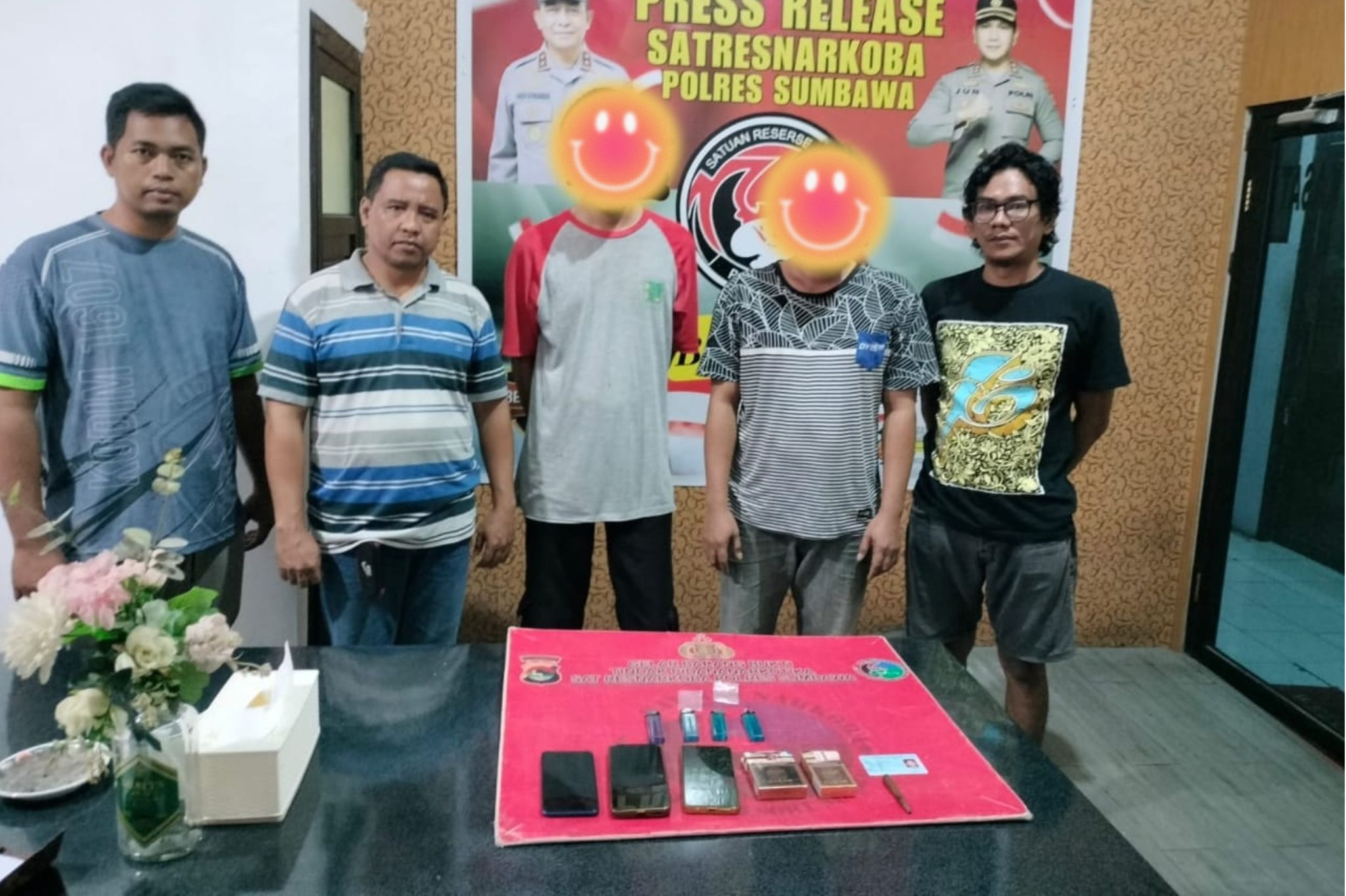 Setibanya di lokasi, petugas mendapati dua orang laki-laki, yakni M.K. (40) dan I. (37), sedang mengonsumsi narkoba jenis sabu. Dalam operasi tersebut, diamankan pula sejumlah barang bukti berupa 1 poket sabu seberat 0,6 gram, 4 korek gas, 3 unit telepon genggam, 2 plastik klip bening, dan 1 alat hisap dari pipa rokok. Kedua pelaku langsung diamankan dan dibawa ke Makodim 1607/Sumbawa untuk diproses lebih lanjut.