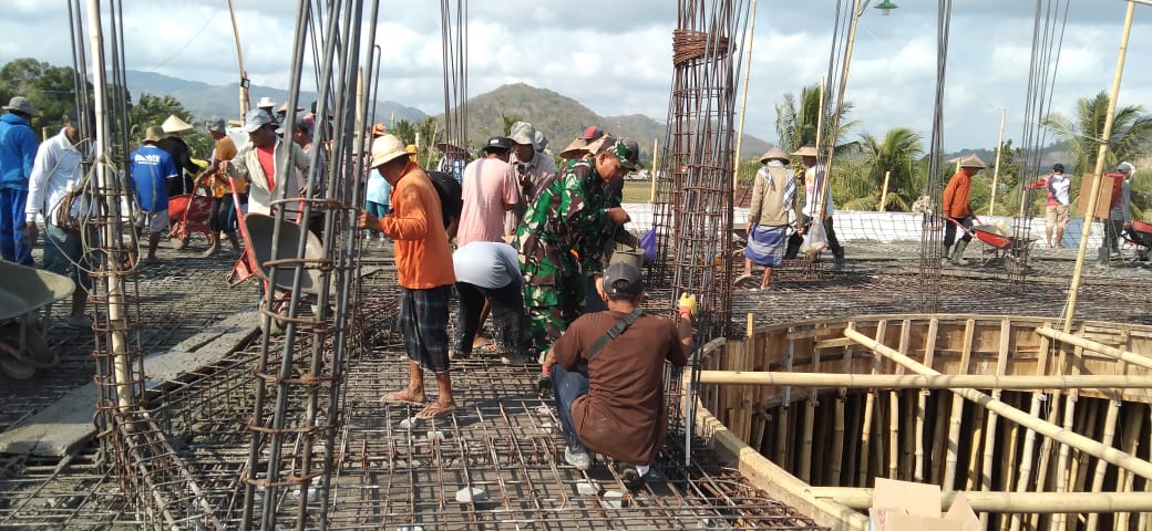 Lombok Barat, NTB – Bintara Pembina Desa (Babinsa) Mesangguk, Komando Rayon Militer (Koramil) 1606-04/Gerung dengan penuh semangat menghadiri gotong-royong pengecoran lantai dua Masjid Baiturrahman di Dusun Pelepok, Desa Mesangguk, Kecamatan Gerung, Kabupaten Lombok Barat, Jum’at (22/9/2023).