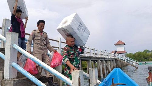 Logistik yang berjumlah 10 kotak surat suara, 8 bilik suara dan 2 paket logistik luar kotak diantar menggunakan perahu nelayan hingga sampai ke masing-masing tempat pemungutan suara (TPS) di dua dusun tersebut.