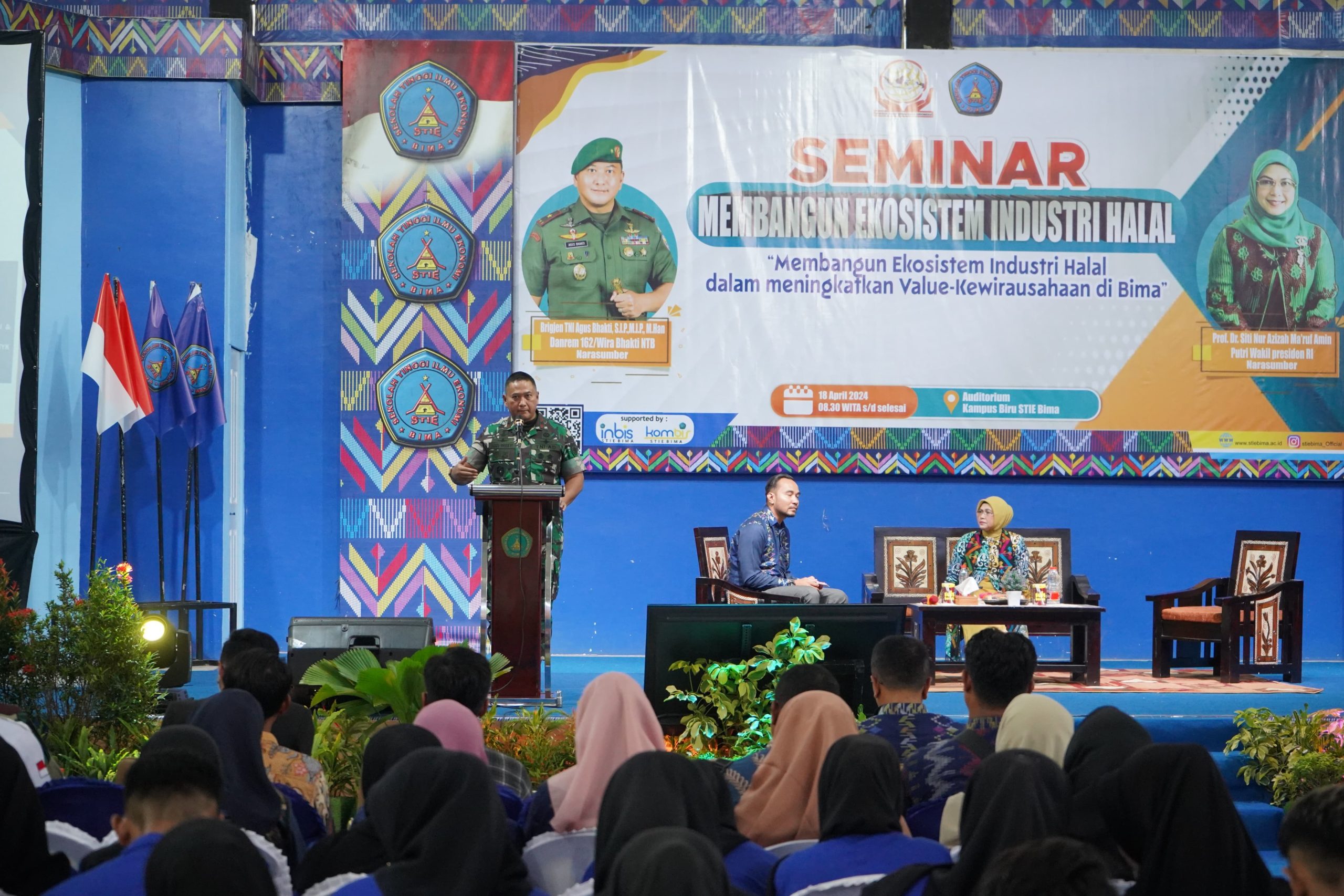 Selain Danrem 162/WB, juga hadir putri Wakil Presiden RI sebagai narasumber yaitu Prof. Dr. Siti Hj. Nur Azizah Ma’ruf Amin, S.H., M.Hum., yang memberikan kuliah umum kepada para mahasiwa STIE Bima. (Penrem)