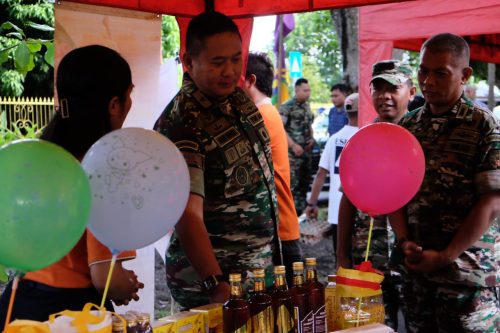 Di lokasi bazar murah, sekitar 13 stan dari berbagai instansi dan swasta melayani para pembeli dengan ramah, termasuk Bulog, PT. Lingsar, PT. Putra Jaya, PT. PPI, Prozen Food, CP. 88, PT. Niaga, serta stan Persit KCK dan beberapa stan lainnya.