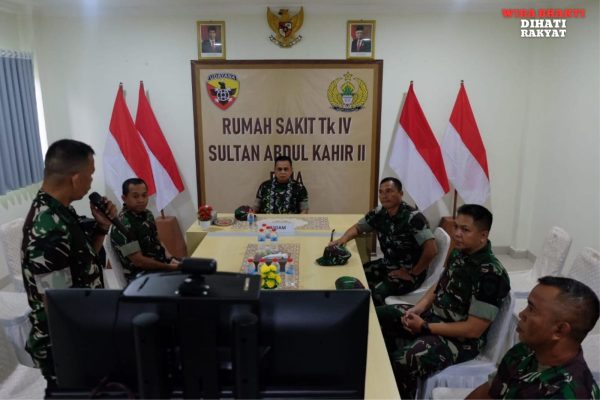 Bima – Kepala Staf Kodam IX/Udayana Brigadir Jenderal TNI Hartono bersama Wakil Ketua Persit KCK PD IX/Udayana Ny. Zusana Hartono menyempatkan diri mengecek kondisi Rumah Sakit Sultan Abdul Kahir II Bima di jalan Jenderal Sudirman Kelurahan Rabangodu Utara Kecamatan Raba Kota Bima, Jumat (7/6/2024).