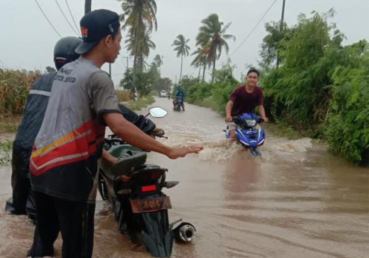 Sumbawa NTB – Hujan deras dengan intensitas tinggi yang mengguyur Kecamatan Lunyuk kabupaten Sumbawa dan sekitarnya sejak Kamis tanggal 06 Juli 2023 pukul 17.00 WITA, menyebabkan meluapnya air Kokar Loang (Aliran Sungai Brang Beh ) Kecamatan Lunyuk mulai merendam pemukiman masyarakat di Dusun Kalbir Desa Emang Lestari dan Dusun Sukamaju Desa Sukamaju Kecamatan Lunyuk dengan ketinggian air 50 cm.