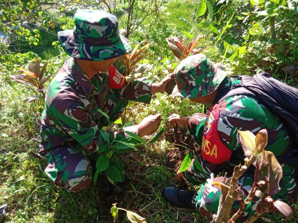 Penamanan ribuan bibit pohon jenis seperti durian, mangga, rambutan dan jati putih itu dipimpin langsung Pasiter Kapten Inf Agil bersama Danramil 1615-09/Sikur Kapten Inf Achmad dan anggota.