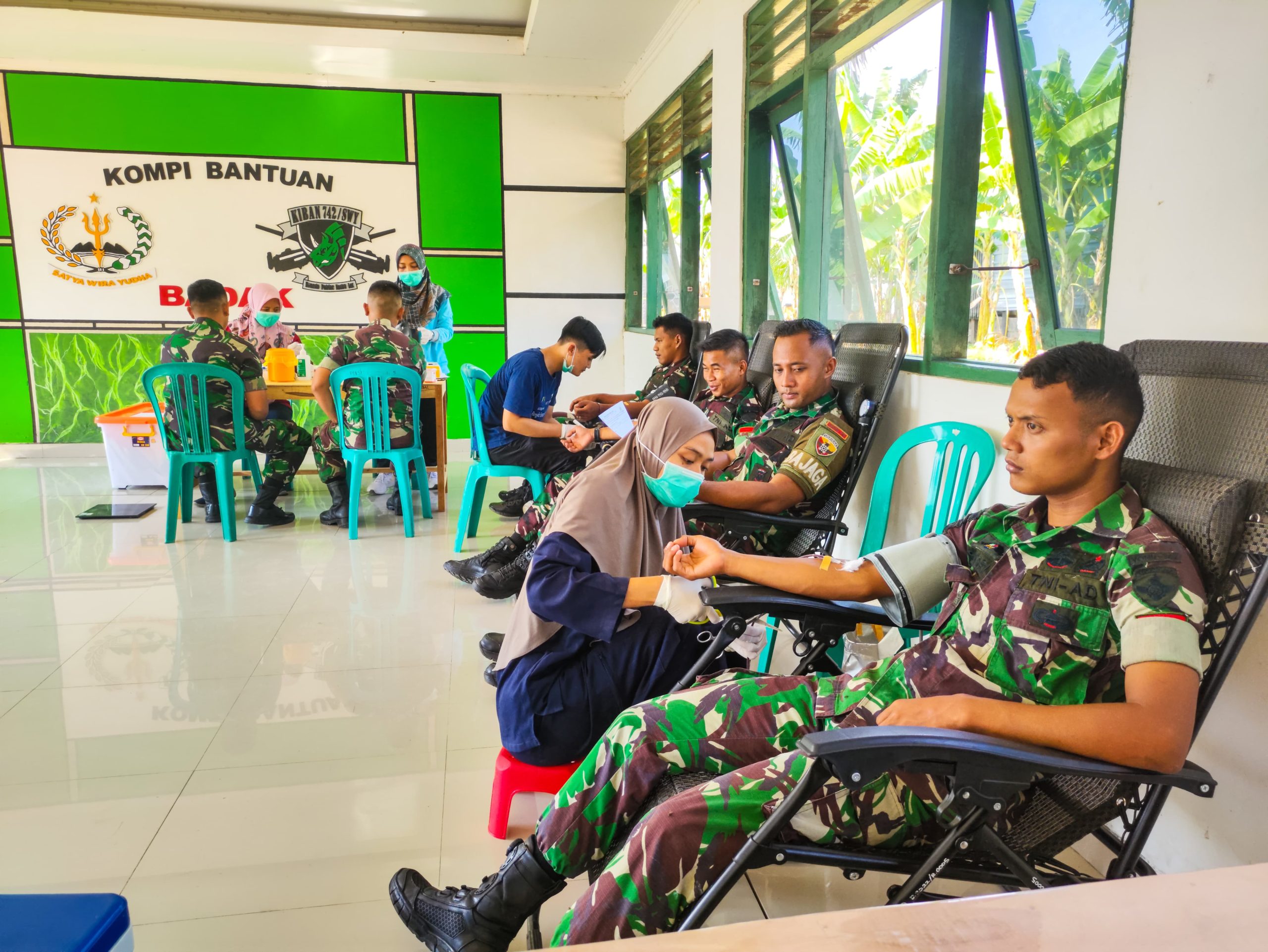 Pringgabaya – Dalam rangka memperingati Hari Sumpah Pemuda yang jatuh pada tanggal 28 Oktober 2023, Kompi Bantuan Yonif 742/SWY menggelar kegiatan donor darah yang bekerjasama dengan RSUD dr. R. Soedjono Selong, bertempat di Kompi Bantuan Yonif 742/SWY, Jl. Raya Labuhan Lombok, Pringgabaya Utara, Kec. Pringgabaya, Kabupaten Lombok Timur, NTB, Sabtu (28/10/2023).