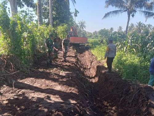 Lombok Timur – Danramil 1615-11/Aikmel Kapten Inf Anowar bersama Babinsanya membantu proses pembangunan jalan usaha tani yang menghubungkan Desa Kalijaga Tengah dengan Desa Sukarema Kecamatan Lenek Kabupaten Lombok Timur.