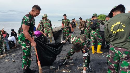 Sejumlah personel dari Koramil terdekat diterjunkan untuk melakukan pembersihan sampah organik dan non organik di pantai tersebut bersama masyarakat setempat, Pramuka Saka Wira Kartika dan Persit Kartika Chandra Kirana.