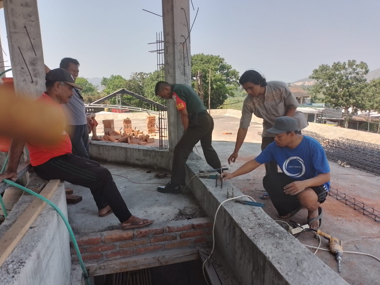 Lombok Barat, NTB – Bintara Pembina Desa (Babinsa), Komando Rayon Militer (Koramil) 1606-04/Gerung Beleke bersama masyarakat berbaur dalam gotong royong pemasangan besi pengecoran dinding kubah di Masjid Nurul Huda, Dusun Beleke, Desa Beleke, Kecamatan Gerung, Kabupaten Lombok Barat, Rabu (25/10/2023).