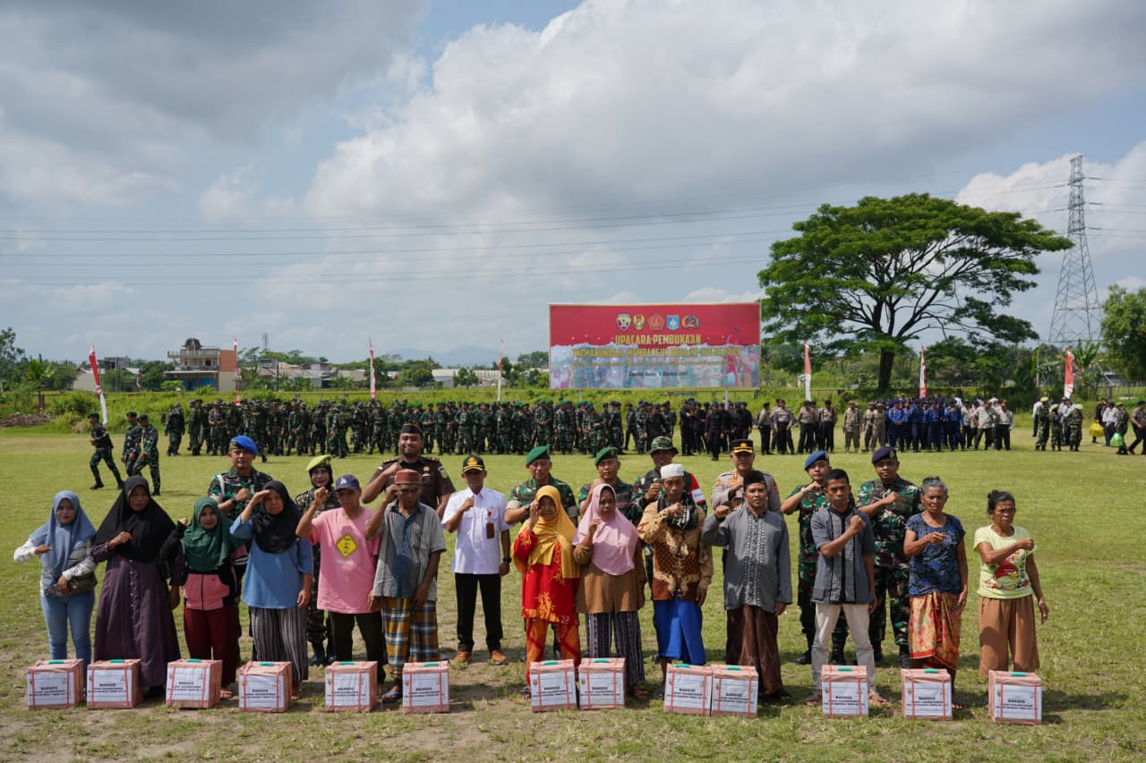 Rangkaian upacara juga diisi dengan penyerahan sarana kerja secara simbolis dan pembagian paket sembako kepada perwakilan masyarakat sebagai bentuk kepedulian TNI kepada warga di lokasi TMMD.